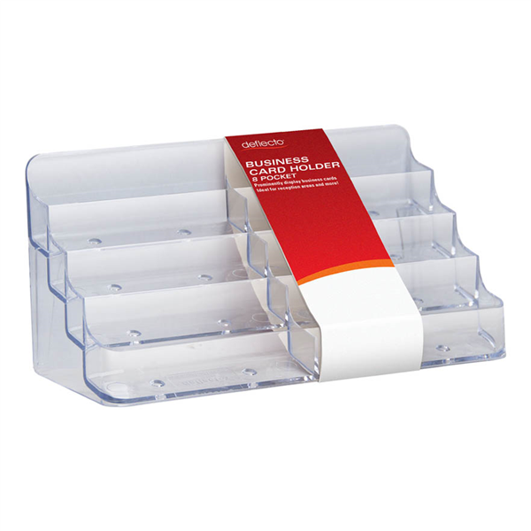 DEFLECTO BUSINESS CARD HOLDER LANDSCAPE 8-POCKET 4-TIER CLEAR