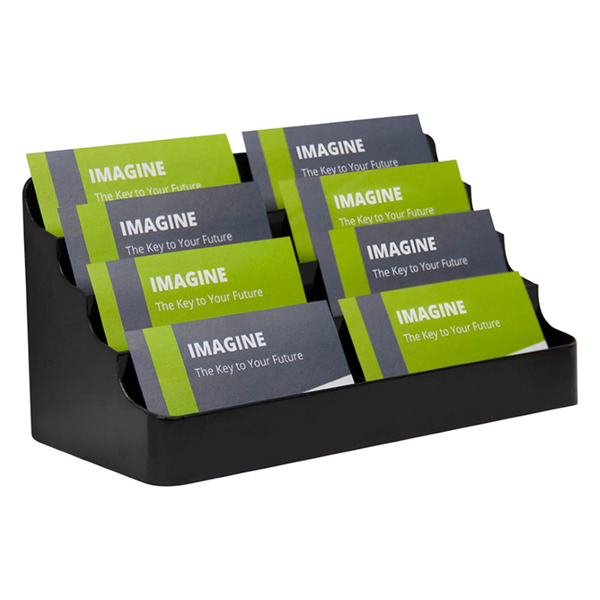 Display numerous business cards prominently using this 8 pocket, recycled plastic business card holder