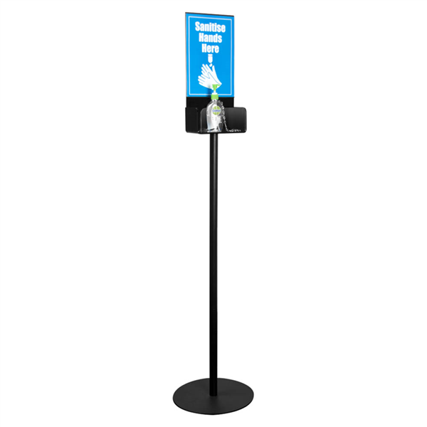 Perfect for placing hand sanitiser for usage when entering or leaving the store With the attachable A4 sign holder you can clearly display your promotions or safety messages The way stand is constructed you can also use for other promotional opportunities Not specific to hand sanitiser like other products being offered The Hand Sanitiser Single Stand - A4 comes with a black metal pole and base that is put together in sections and has a single holder manufactured using quality 6mm black and clear acrylic that is attached to top of pole Further it has an A4 attachable sign holder