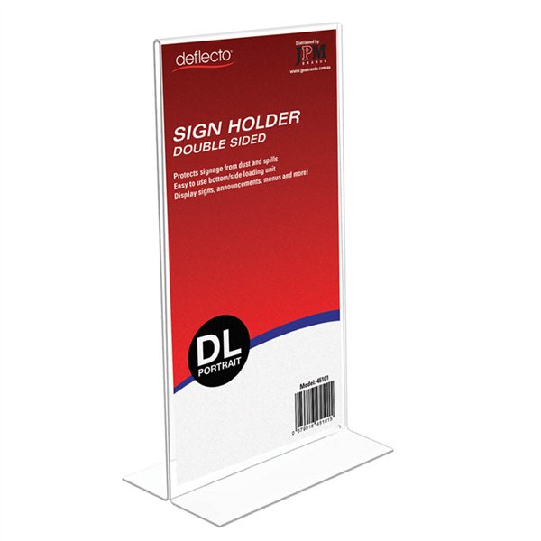 DEFLECTO SIGN HOLDER T-SHAPE DOUBLE SIDED PORTRAIT DL CLEAR