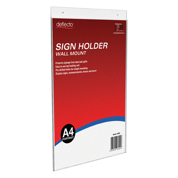 DEFLECTO SIGN HOLDER WALL MOUNT PORTRAIT A4 CLEAR