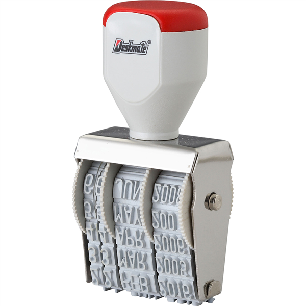 Roll the wheels to get the desired date Designed to be used with the deskmate stamp pads Ideal for daily use at work or home Durable steel frame 12 year band 2 year warranty