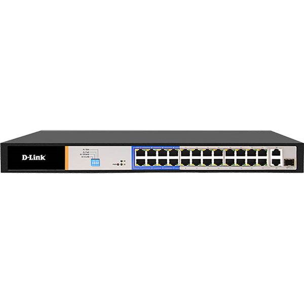 Has 26 ports in which 24 are long reach 250m ports and 2 are gigabit uplink ports Up to 250m PoE and Data Transmission- Equipped with PoE extend technology, the DES-F1026P-E have the capability to supply 802.3af/at PoE and data connectivity on cables up to 250m long 6KV Surge Protection- D-Link DES-F1026P-E switch is enhanced with 6KV surge protection. This effectively protects the switch against sudden electrical surges caused by events such as lightning strikes or unstable electrical current. Built-in 6 kV surge protection significantly reduces the chances of equipment being damaged from electrical surges, and effectively lowers maintenance costs by minimizing the need for expensive equipment repairs or replacement Enhanced with VLAN Function- With a flick of button you can isolate switch ports from each other, but still allowing the devices to communicate via the uplink ports. This feature not only adds security but can also effectively suppress network storms and improve network performance Enhanced with QoS- The DES-1026P-E switch performance is enhanced with QoS (Quality of Service) feature to ensure that critical network services such as IP surveillance, VoIP, IPTV are always given high priority. This feature makes the switch a perfect solution for IP Camera/CCTV applications Intelligent Detection- With AI PoE feature enabled the switch can automatically detect an unresponsive PoE device and reboot the devices in order to recover it 24 x 10/100 Mbps Fast Ethernet PoE+ Ports 2 x Gigabit Uplink Ports with Combo SFP PoE+ support - up to 30W per port Long Reach PoE support - up to 250m Smart Features: Extend, VLAN, QoS and PoE Reset Lightning protection built-in (6kV) PoE Budget 250 Watts Plug & Play Installation