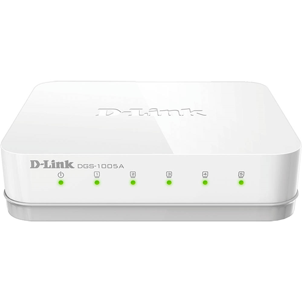 5 high-speed Gigabit ports Compact design for convenient placement Fanless design for silent operation Innovative D-Link Green energy saving features Environment Friendly- The 5-Port Gigabit Unmanaged Desktop Switch was designed with the environment in mind, and is compliant with Energy Star Level V, as well as with the stringent CEC and MEPS regulations that require the use of energy efficient power adapters. The switch is also built to follow RoHS standards to minimize use of hazardous materials, and uses recyclable packaging that helps reduce waste, complying with the WEEE directive Fast and Reliable Networking- The D-Link 5-Port Gigabit Unmanaged Desktop Switch creates a blazing fast network for your office, as its Gigabit Ethernet ports provide high-speed wired connections for up to five PCs or other devices. The DGS-1005A also features QoS, which prioritizes network traffic so that time-sensitive data is delivered efficiently, even during bursts of high data traffic