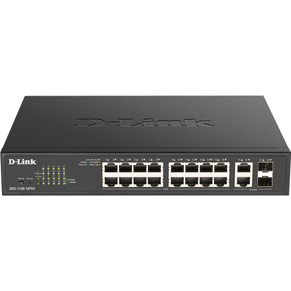 D-LINK DGS-1100-18PV2 18-PORT GIGABIT SMART MANAGED POE SWITCH WITH 16 POE AND 2 COMBO RJ45/SFP PORTS