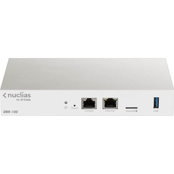 Versatile and Cost-Effective Hardware Controller Backwards-Compatibility with Legacy APs Intuitive Interface Traffic Reporting & Analytics Multi-Tenant & Role-Based Administration Searchable & Auditable Event & Change Logs Customizable Captive Portal Single Sign-On Payment Gateway Integration and Front-Desk Ticket Management The D-Link DNH-100 Wireless Controller is a centralized wireless LAN manager developed specifically for our Nuclias Connect management solution and is suitable for small to medium-sized business (SMB) IT infrastructure. It comes preloaded with Nuclias Connect network management software, which is a key asset for businesses where IT skills are limited by financial or other constraints Tasks can be centralized and automated, meaning the DNH-100 is highly suited for remote deployment where either dedicated onsite staff are unavailable, or servers, PCs and other devices that can run the software might not be viable Unbeatable value for money, delivering real value at a lower-than-expected price. Its backwards compatibility with a variety of legacy AP's means no need to unnecessarily replace older but still functioning hardware, better for your wallet and the planet The DNH-100 features self-organizing and self-optimizing capabilities such as interval-based radio scanning and analysis, self-management of radio frequency, as well as L2/L3 AP discovery and output power. Combined with other self-healing capabilities, it can maintain stability and continue operating at optimal levels even during peak usage times, so you can rest assured users are getting the best service possible The DNH-100 Nuclias Connect Wireless Managed Controller was designed for businesses where security and privacy are paramount, and for companies with policies requiring data ownership, Nuclias Connect ensures that user data never leaves your possession. All communications between Nuclias Connect Access Points and the DNH-100 are securely encrypted with SSL/HTTPS A compact, cost-effective solution that can manage up to 100 Nuclias Connect access points without the need of extra server/pc Manage up to 100 Wireless Access Points (APs) simultaneously or individually Fully equipped with a 1000Base-T Ethernet Port, a USB 3.0 Port, and a Micro SD Slot Easy to manage with D-Link's centralized management software-based solution, Nuclias Connect Auto managed frequency bands and L2/L3 AP discovery makes sure connected devices are getting the best coverage available Manage multiple VLANs for enhanced network management and SSID setups for greater control Support for IEEE 802.3ab/u/x standards allows seamless integration with other systems Single Sign-On saves time, cutting out the endless entering of user login details Support for Command Line Interface (CLI) Support for NAT Passthrough which allows multi-site management