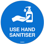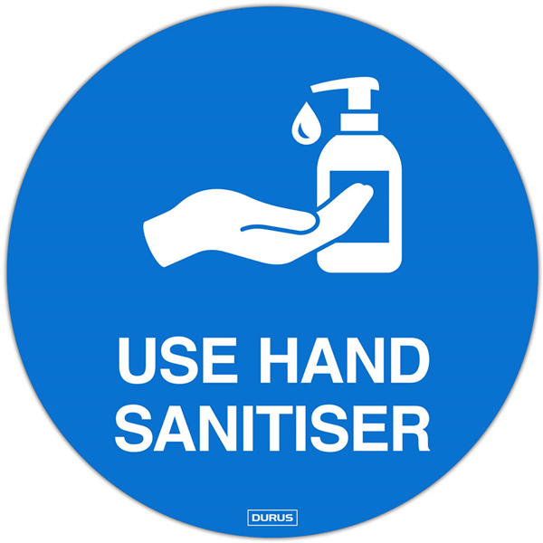 DURUS ADHESIVE FLOOR SIGN USE HAND SANITISER CIRCULAR 250MM BLUE