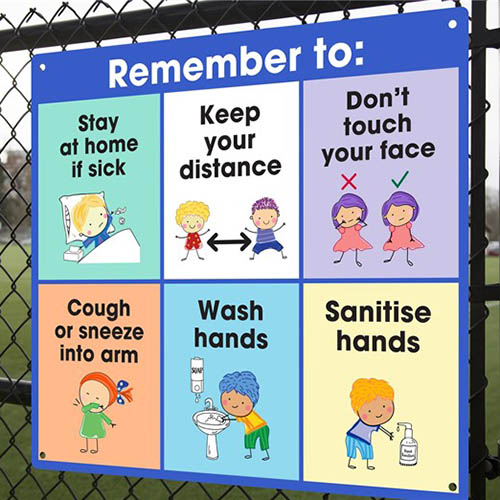 This gate sign acts as a reminder to parents and students as they arrive at school and preschools Designed to deliver key messages about hygiene and social distancing to help stop the spread of germs Includes mounting holes at the top and bottom to easily attach to gates using thick cable ties Made in Australia