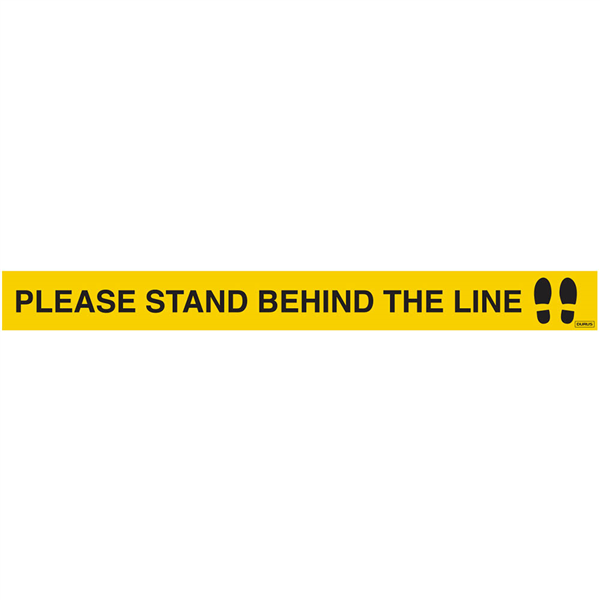 DURUS HARD FLOOR STRIPS PLEASE STAND BEHIND THE LINE 50 X 500MM YELLOW PACK 5