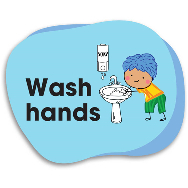 DURUS SCHOOL OUTDOOR FLOOR SIGN ADHESIVE MEMORY JOGGER WASH HANDS 250 X 200MM BLUE