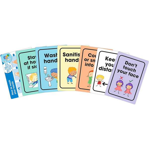 Each set contains 7 hygiene and distance messages which match the wall signs