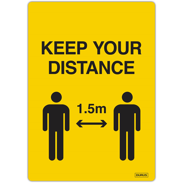 DURUS SELF ADHESIVE DECAL KEEP YOUR DISTANCE 105 X 148MM YELLOW PACK 2