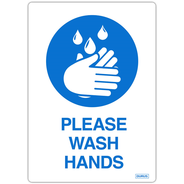 DURUS SELF ADHESIVE DECAL PLEASE WASH HANDS 105 X 148MM BLUE/WHITE PACK 2