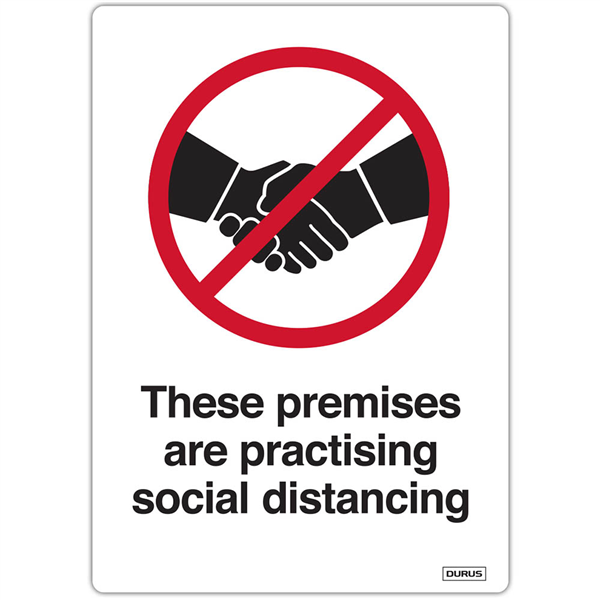 DURUS SELF ADHESIVE DECAL THESE PREMISES ARE PRACTISING SOCIAL DISTANCE 105 X 148MM BLACK/RED PACK 2