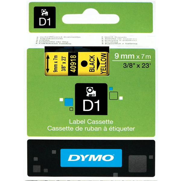 DYMO 40918 D1 LABELLING TAPE 9MM X 7M BLACK ON YELLOW