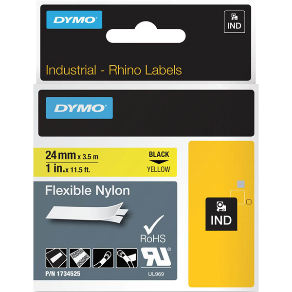 DYMO SD1734525 RHINO INDUSTRIAL TAPE FLEXIBLE NYLON 24MM BLACK ON YELLOW