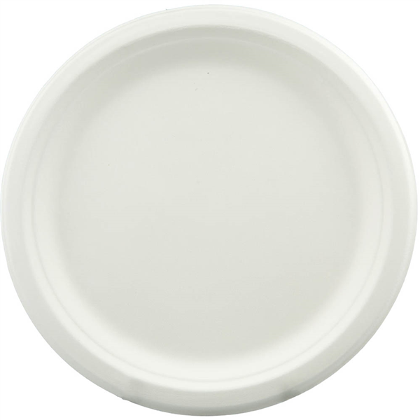 Cost effective disposable plastic snack plates for use in the office, picnics and parties at home Round 7 inch plate made of sugarcane bagasse, a 100% renewable material 100% compostable