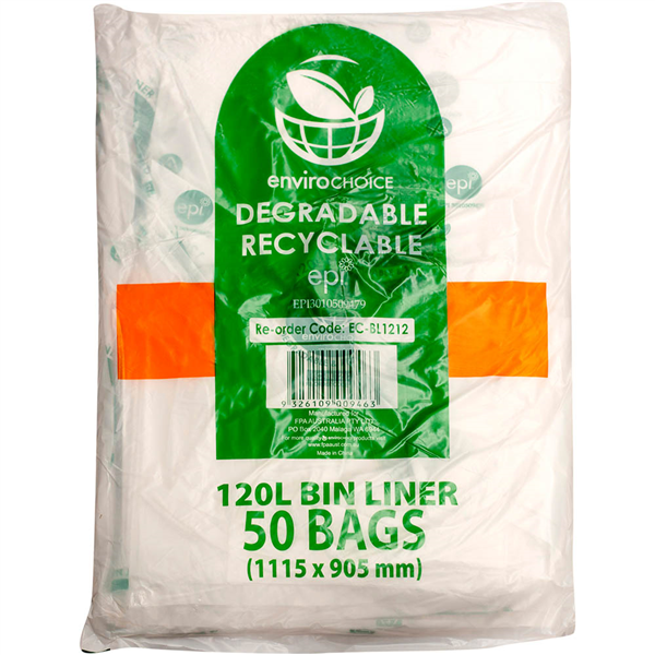 ENVIROCHOICE BIN LINER DEGRADEABLE LOW DENSITY 120 LITRE CLEAR PACK 50