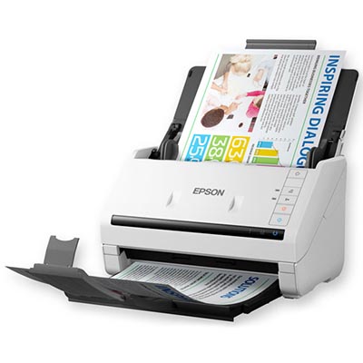 The EPSON WorkForce DS-570W document scanner takes efficiency to a new level for business environments where fast and easy document management is required. Scan documents, business cards, and identification cards directly to popular cloud services with the included software. The scanner is very easy to use and includes intuitive one-touch scanning