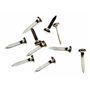 Brass-plated steel, with a round head and spear point Made from sturdy tinned steel