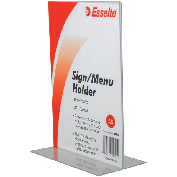 ESSELTE SIGN / MENU HOLDER DOUBLE SIDED PORTRAIT A5 CLEAR
