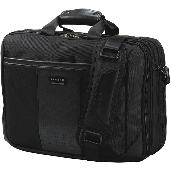 The Versa line packages versatility and organization in tastefully compact form. EVERKIs latest addition to its selection of laptop briefcases features a Checkpoint Friendly laptop compartment that accommodates up to 16 inch laptops. This bag presents style and workplace functionality with the rugged durability the mobile professional requires. Its tasteful black exterior is fashioned from high-quality, water-resistant Ballistic nylon and EVERKIs patent-pending corner-guard protection system shields laptops from damage to the areas manufacturers have cited as most frequently in need of repair
