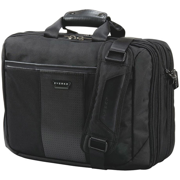 The Versa line packages versatility and organization in tastefully compact form. EVERKIs latest addition to its selection of laptop briefcases rounds out its range of sizes with a Checkpoint-Friendly laptop compartment equipped to hold up to 17.3 inch laptops. This bag presents style and workplace functionality with the rugged durability the globetrotting professional requires. Its tasteful black exterior is fashioned from high-quality, water-resistant Ballistic nylon and EVERKIs patent-pending corner-guard protection system shields laptops from damage to the areas manufacturers have cited as most frequently in need of repair
