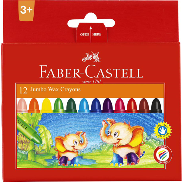 FABER-CASTELL JUMBO WAX CRAYONS ASSORTED BOX 12