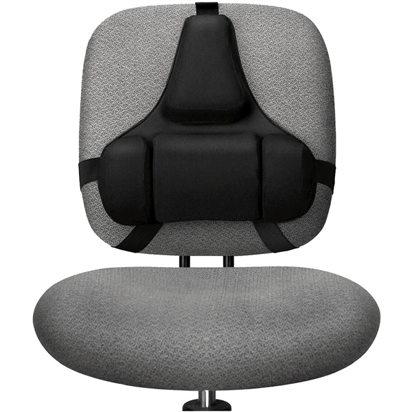 3 Section lumbar support expands and contracts to natural body curvature Thoracic Support is contoured with a low density foam to optimise the postural support in a subtle application Fully adjustable design allows it to fit most office chairs Easy setup: Place support on chair, position your back and just clip the straps! Accredited by the FIRA International, an Indpendant Ergonomic Accreditor Dimension: 368.3 x 381 x 50.8mm Colour: Black OEM: 8037601