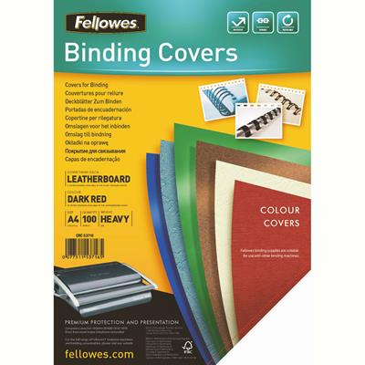 FELLOWES BINDING COVER LEATHERGRAIN 230GSM A4 DARK RED PACK 100