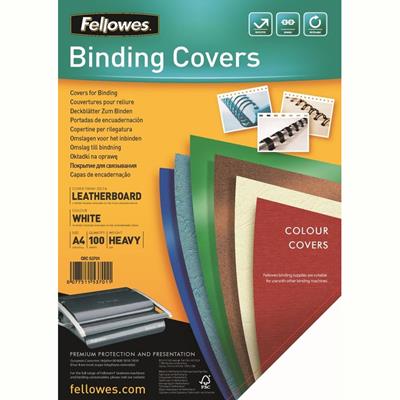 FELLOWES BINDING COVER LEATHERGRAIN 230GSM A4 WHITE PACK 100