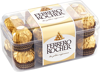 Ferrero Rocher is a crisp hazelnut and milk chocolate-covered speciality with a smooth filling and whole hazelnut.