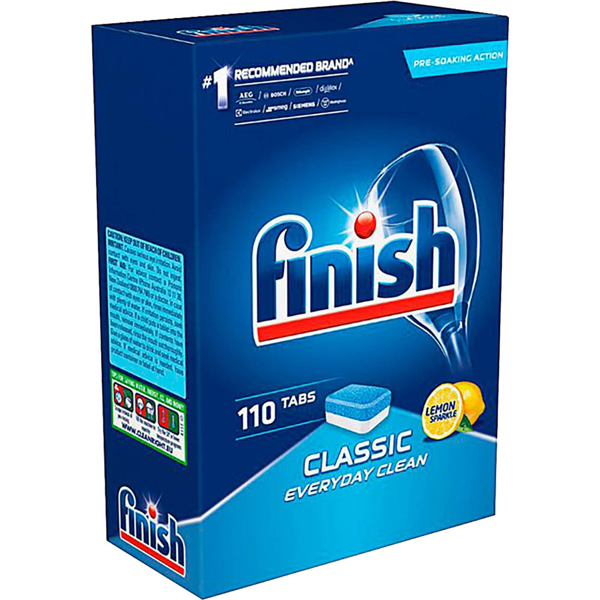 Soaking and softening tough food stains, the Finish Classic Dishwashing Tablet can lift different kinds of food residue from your plates Cleanses and leaves fresh smell Soak and softens tough food stains Remove different kinds of food residue from your plates Pleasant clean fragrance Powerful detergents Washes away all traces Tea stain removal For optimal results, use with Finish Rinse Aid