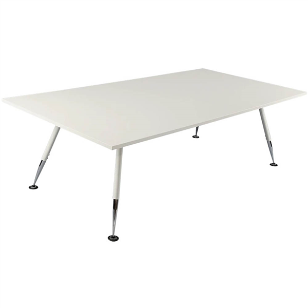The Fleet is a modern, elegant boardroom table with white top, white powder coated legs and chrome feet Durable and well constructed for the corporate meeting or boardroom Stylish modern legs White frame with chrome feet 25mm white tops with abs edge Backed by a 10 year warranty
