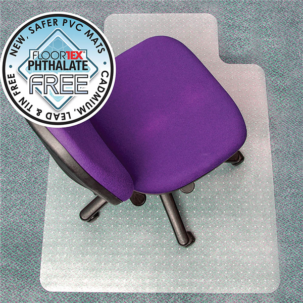 PVC chairmat for medium pile carpet up to 12mm thick Phthalate free PVC formula for safety, clarity and durability Contains up to 25% recycled material Produced using up to 30% renewable energy Includes grippers for stay-Put performance