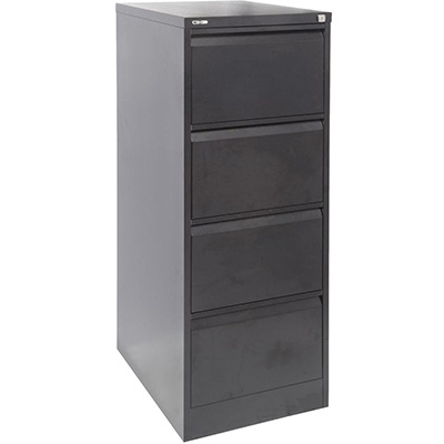Go Steel GFCA4 premium quality metal 4 drawer filing cabinet is designed to be durable and of a commercial quality, ideal for high volume, long term filing These cabinets are built to last Riveted construction for extra strength Anti tilt locking Heavy duty ball bearing runners 100% drawer opening 45 kg loading per drawer Fully assembled and packaged Master keyed locking system Tested to: BS EN 14073: 2004 Parts 2-3, BS EN 14074: 2004 and AFRDI Level 6