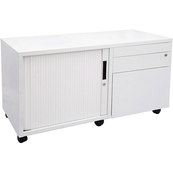 Ideal for users with a permanent workstation or Hot Desk users The unit is fully lockable and has a flush front mobile pedestal and a tambour door section with a centre shelf Fully Lockable Master Key locking series Flush Front Mobile Pedestal Tambour Door Section With Centre Shelf Ball bearing runners to drawers Available in Right or Left sided Tambour Door Backed by a 10 year warranty