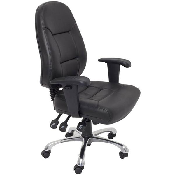 Comes standard with a range of adjustments - seat and back tilt, seat slide for extra seat depth, and ratchet back for easy back height adjustment Chrome base, upholstered in soft black PU and backed by a 10 year warranty Fully ergonomic Chrome base Adjustable arms Ratchet back Seat slide