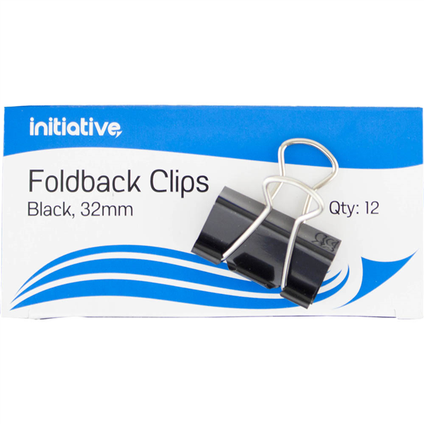 INITIATIVE FOLDBACK CLIP 32MM BLACK PACK 12