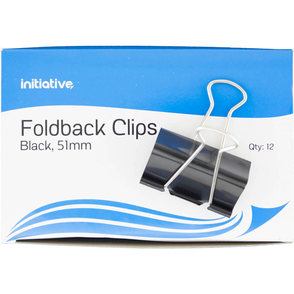 INITIATIVE FOLDBACK CLIP 51MM BLACK PACK 12