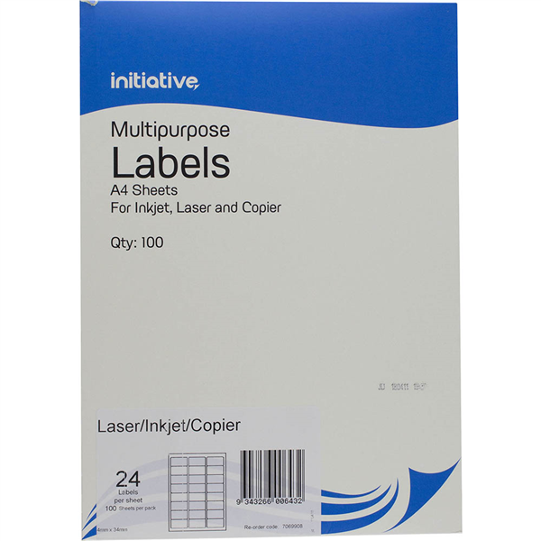 INITIATIVE MULTI-PURPOSE LABELS 24UP 64 X 33.8MM PACK 100