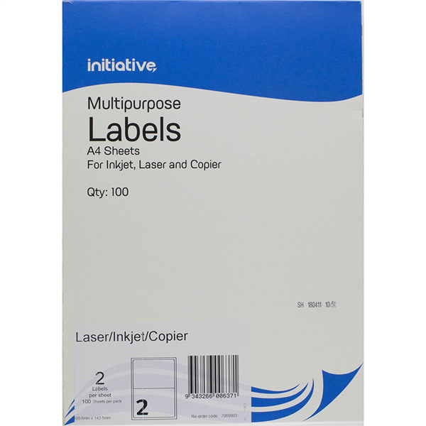 INITIATIVE MULTI-PURPOSE LABELS 2UP 199.6 X 143.5MM PACK 100