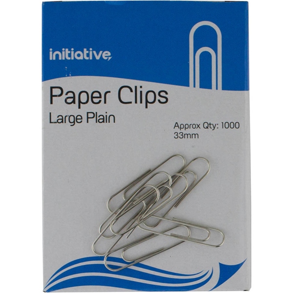 INITIATIVE PAPER CLIP LARGE PLAIN 33MM PACK 1000