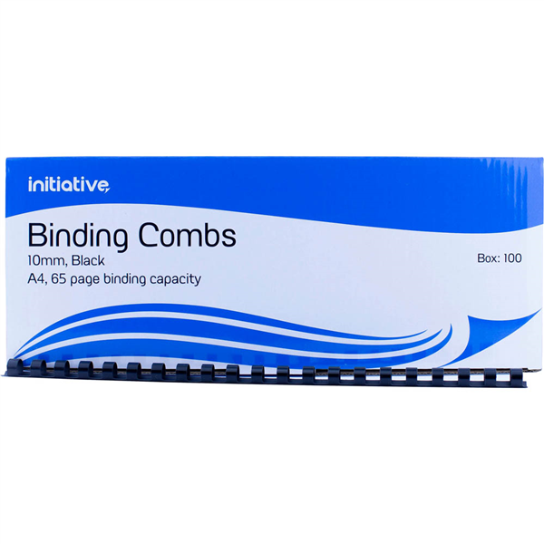 INITIATIVE PLASTIC BINDING COMB ROUND 21 LOOP 10MM A4 BLACK BOX 100