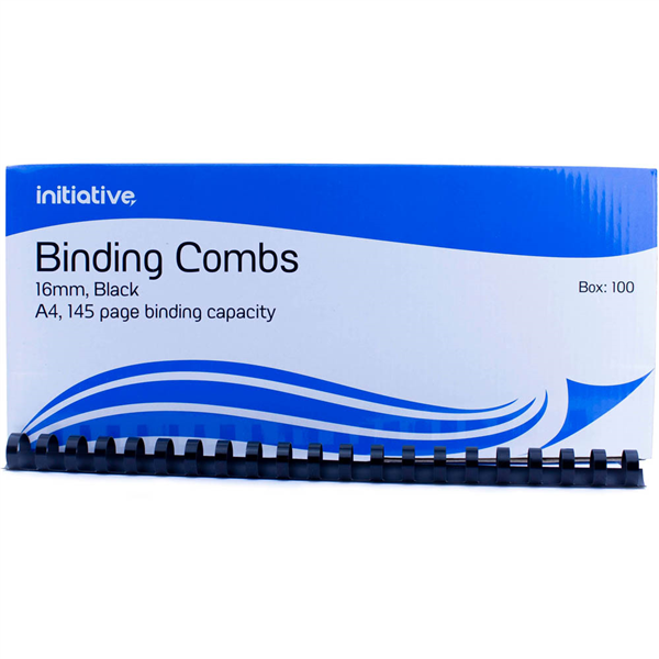 INITIATIVE PLASTIC BINDING COMB ROUND 21 LOOP 16MM A4 BLACK BOX 100
