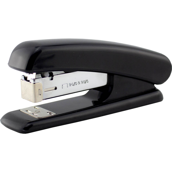 Ergonomic rounded plastic handle increases comfort when stapling Lightweight and easily portable Top loading stapler that operates smoothly with a simple touch Metal interior mechanism and anti-slip base ensures durability and provides consistent, hassle free stapling Staples up to 20 sheets of 80gsm paper Half strip, holds 120 staples Uses 24/6 and 26/6 size staples