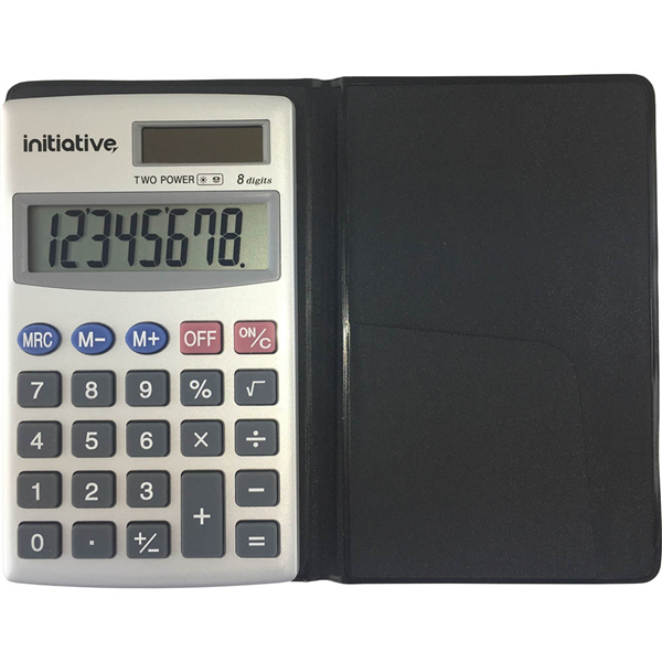 INITIATIVE POCKET CALCULATOR 8 DIGIT DUAL POWERED GREY