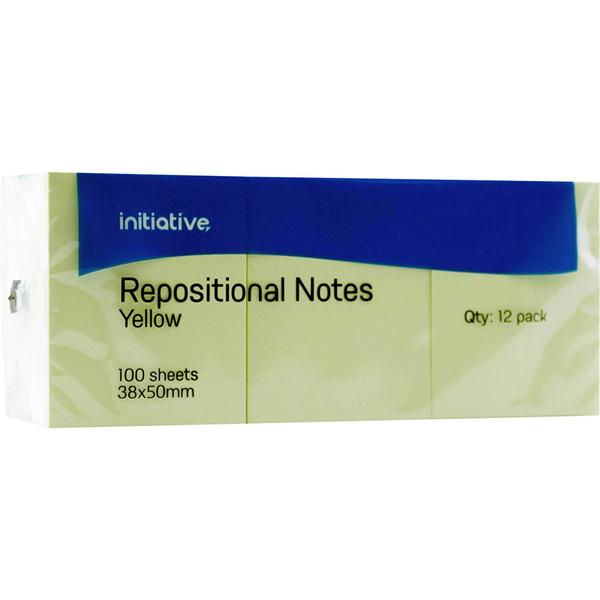 INITIATIVE REPOSITIONAL NOTES 40 X 50MM YELLOW PACK 12
