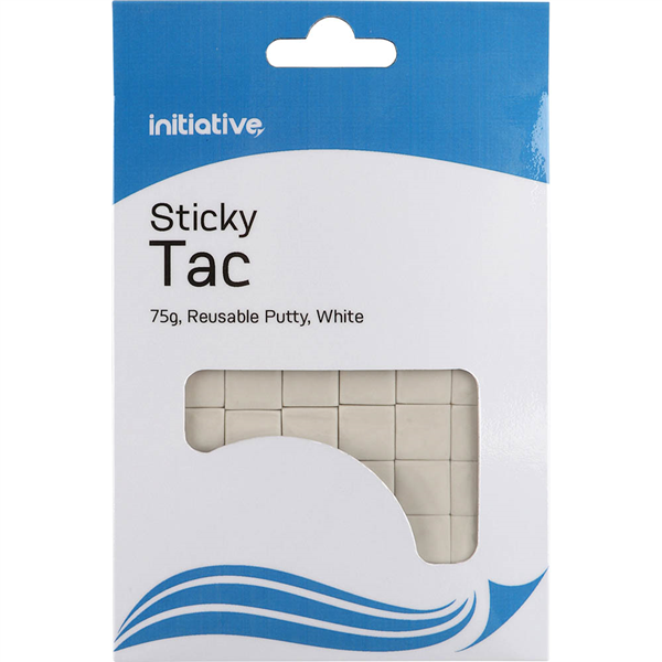 The Initiative white tac will hold papers or light objects to most surfaces Ideal for sticking posters and other items to walls and surfaces without leaving marks or residue The resealable cardboard sleeve and protective thin plastic sheet cover allows the putty to be safely stored to stop it drying when not in use No mess alternative to pins and tape Ideal for sticking up pictures or maps or decorations and more
