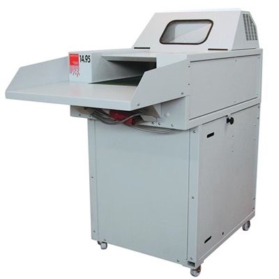 For decades, the intimus heavy duty shredders have proven to be centrally positioned pieces of equipment for the privacy friendly disposal of disused media. The spacious feed table with integrated infeed conveyor belt provides controlled, effortless, safe and fast loading. The shredded material is collected in large-scale, mobile or swing-out containers under the cutting mechanism. The shred-press combinations are coupled to a baler for immediate fully automatic compaction of the cut material into compact bales. Reduction effect compared to the loose collection of the cuttings is about 70% Large document shredder for smooth and crumpled paper 440mm working width; suitable for all standard computer formats Feeding via conveyor belt Bin full' alarm, with simultaneous automatic stop of the shredding process 200 litre collecting bin supplied as standard equipment Small footprint to fit through standard door openings Mounted on rollers for flexible use All doors secured with safety switches